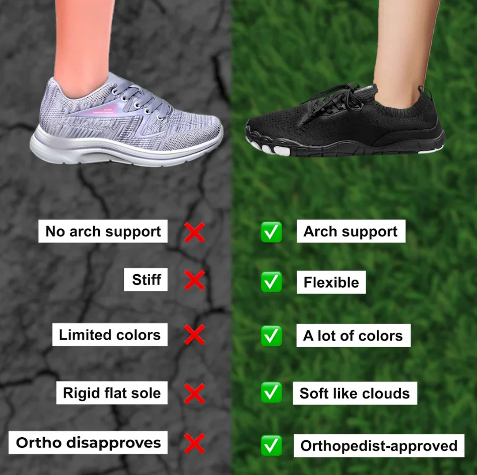 ✓ Promotes a natural gait: Strengthens your feet and legs by encouraging a natural walking pattern, helping to alleviate body aches and plantar fasciitis symptoms.